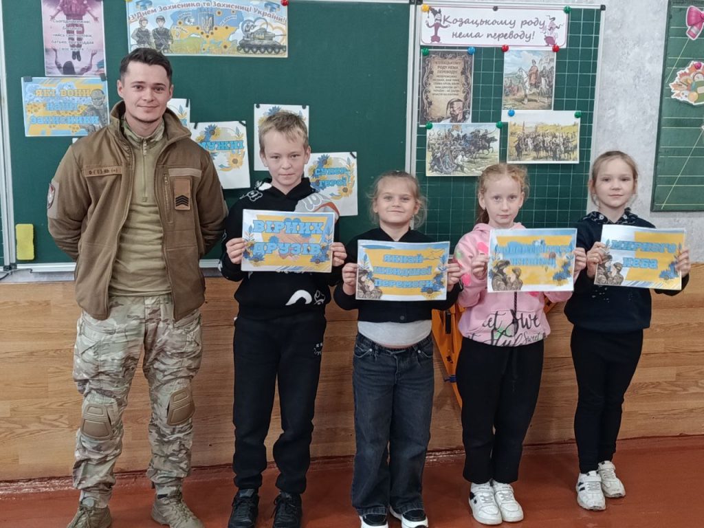 Учні з великою радістю познайомилися з Героєм, слухали його щирі та відверті розповіді про службу і боротьбу за свободу України. Діти ставили запитання, ділилися своїми враженнями та з цікавістю слухали відповіді. Атмосфера зустрічі була наповнена гордістю й захопленням, адже перед ними стояв приклад справжньої мужності й любові до Батьківщини. На завершення учні із задоволенням сфотографувалися із захисником, щоб зберегти пам’ять про цю важливу подію.