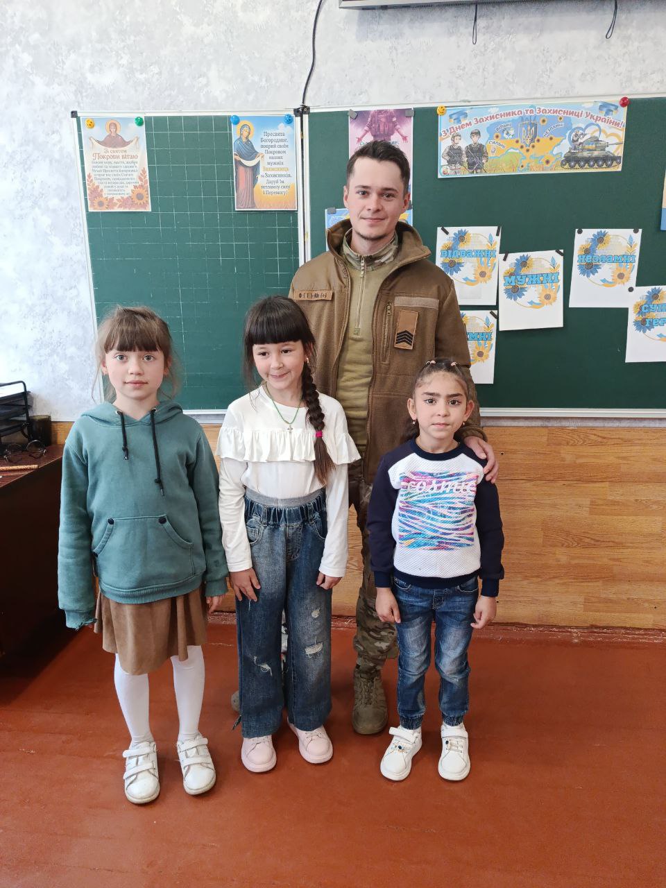 Учні з великою радістю познайомилися з Героєм, слухали його щирі та відверті розповіді про службу і боротьбу за свободу України. Діти ставили запитання, ділилися своїми враженнями та з цікавістю слухали відповіді. Атмосфера зустрічі була наповнена гордістю й захопленням, адже перед ними стояв приклад справжньої мужності й любові до Батьківщини. На завершення учні із задоволенням сфотографувалися із захисником, щоб зберегти пам’ять про цю важливу подію.