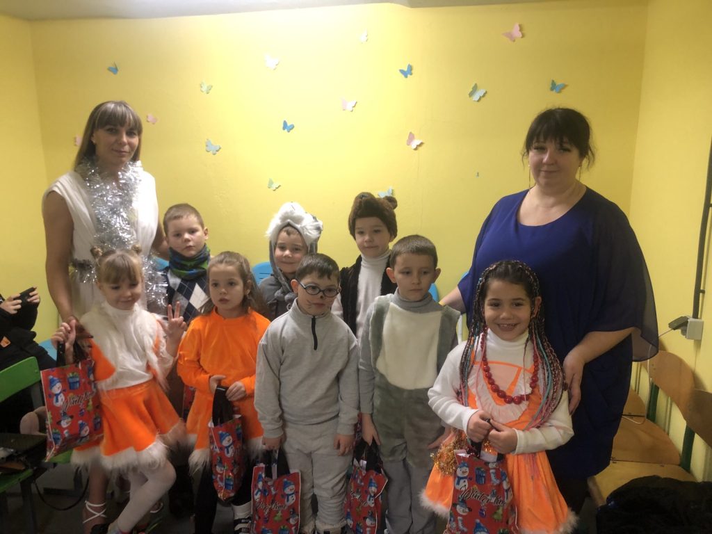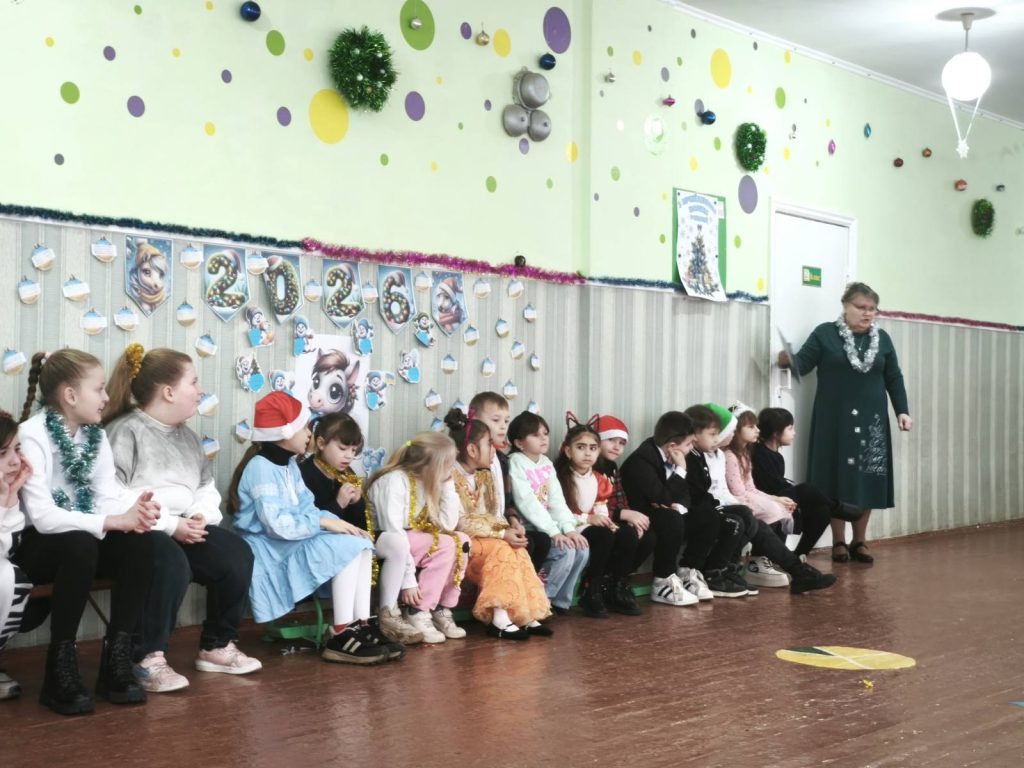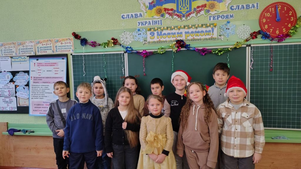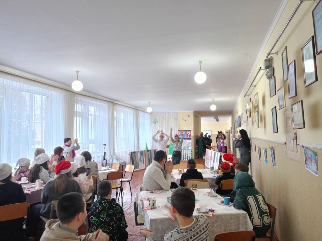 Для учнів початкової школи було організовано яскраве та веселе дійство: діти співали новорічні пісні, танцювали, брали участь у рухливих іграх та розвагах, наповнюючи зал щирими усмішками й радістю. Під час свята пролунала повітряна тривога, однак це не завадило гарному настрою — святкування було безпечно продовжене в укритті, де діти й надалі отримували позитивні емоції та святкові враження.