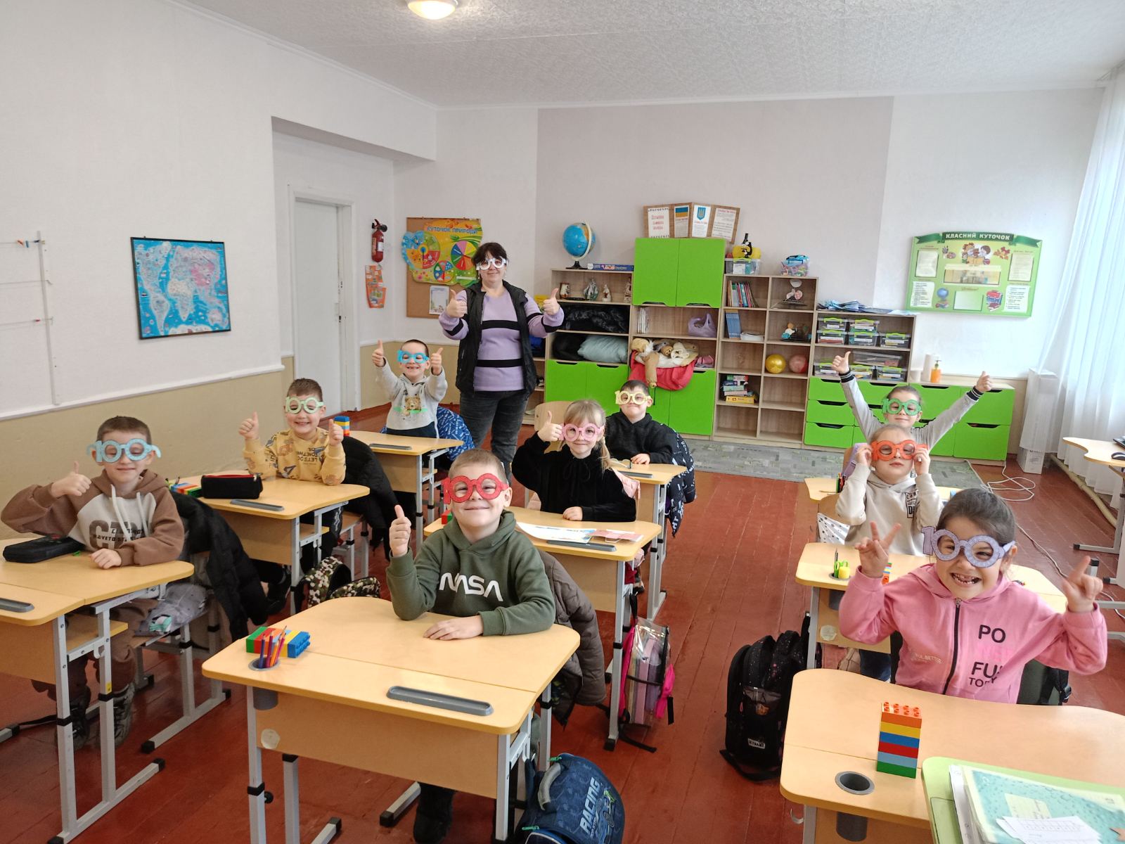 Цей день був сповнений дитячого сміху та незабутніх емоцій. Учні активно грали в розвиваючі ігри, із захопленням відповідали на цікаві запитання вікторини та фотографувалися в кумедних окулярах. Кожен момент був особливим!