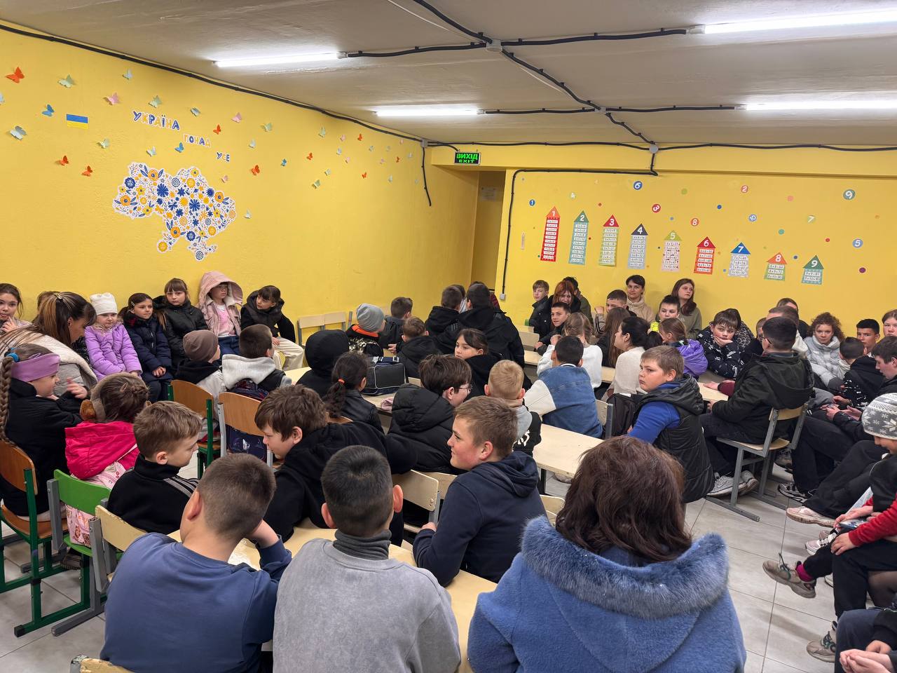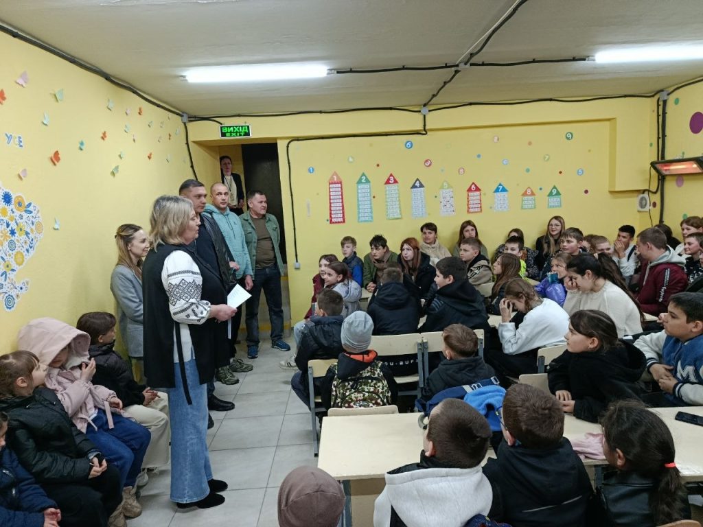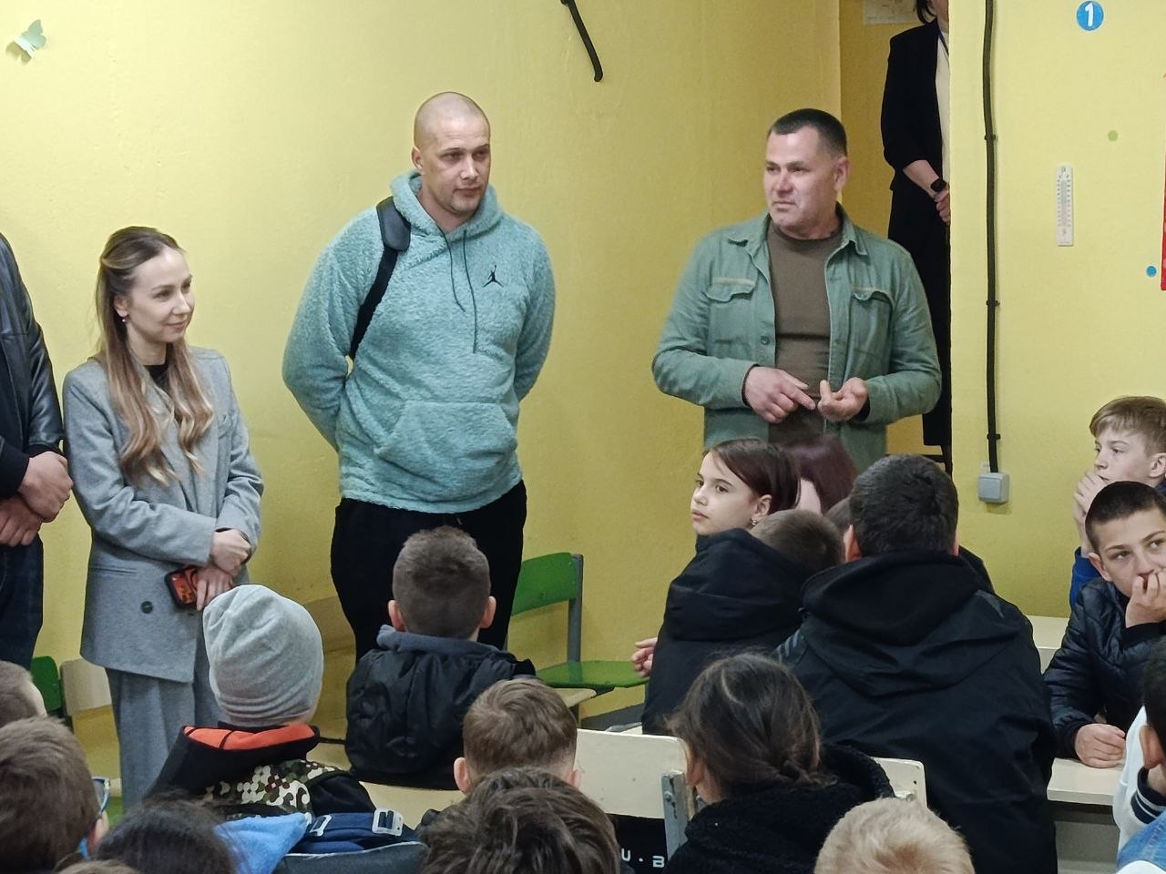 На жаль, через оголошення повітряної тривоги захід довелося розпочати в укритті. Проте навіть у таких умовах зустріч відбулася щиро та змістовно: учні мали змогу поспілкуватися з військовими, поставити запитання та отримати відверті відповіді.